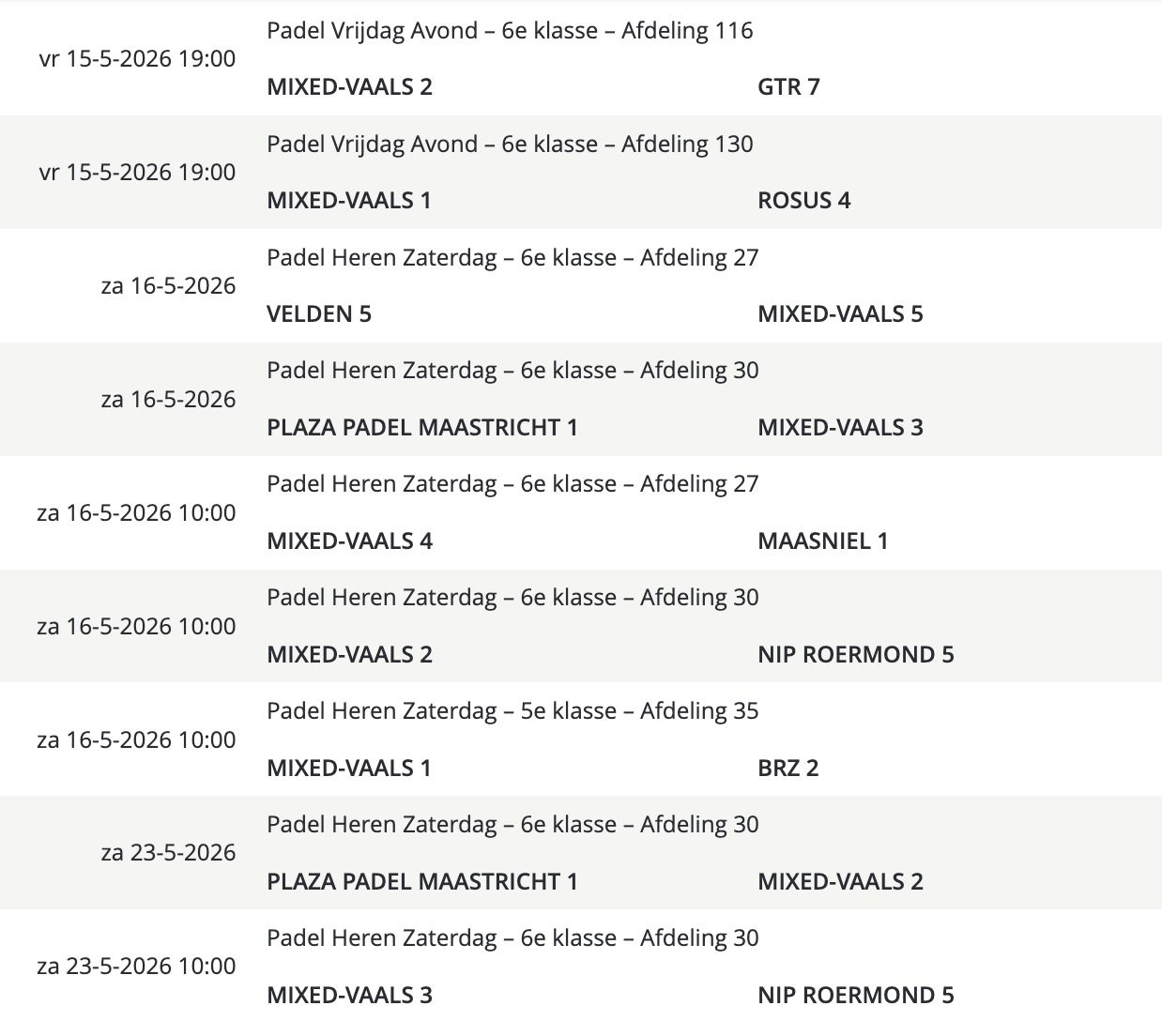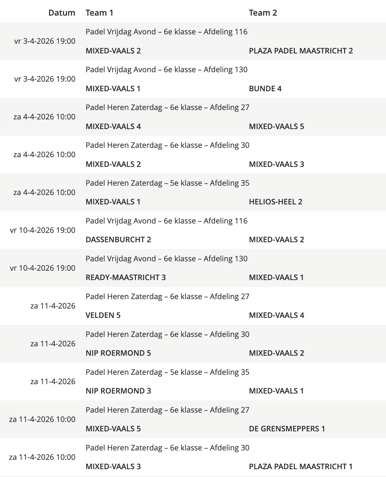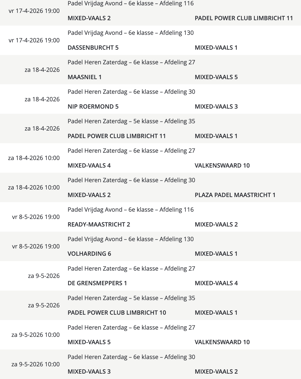 Wedstrijdschema padel